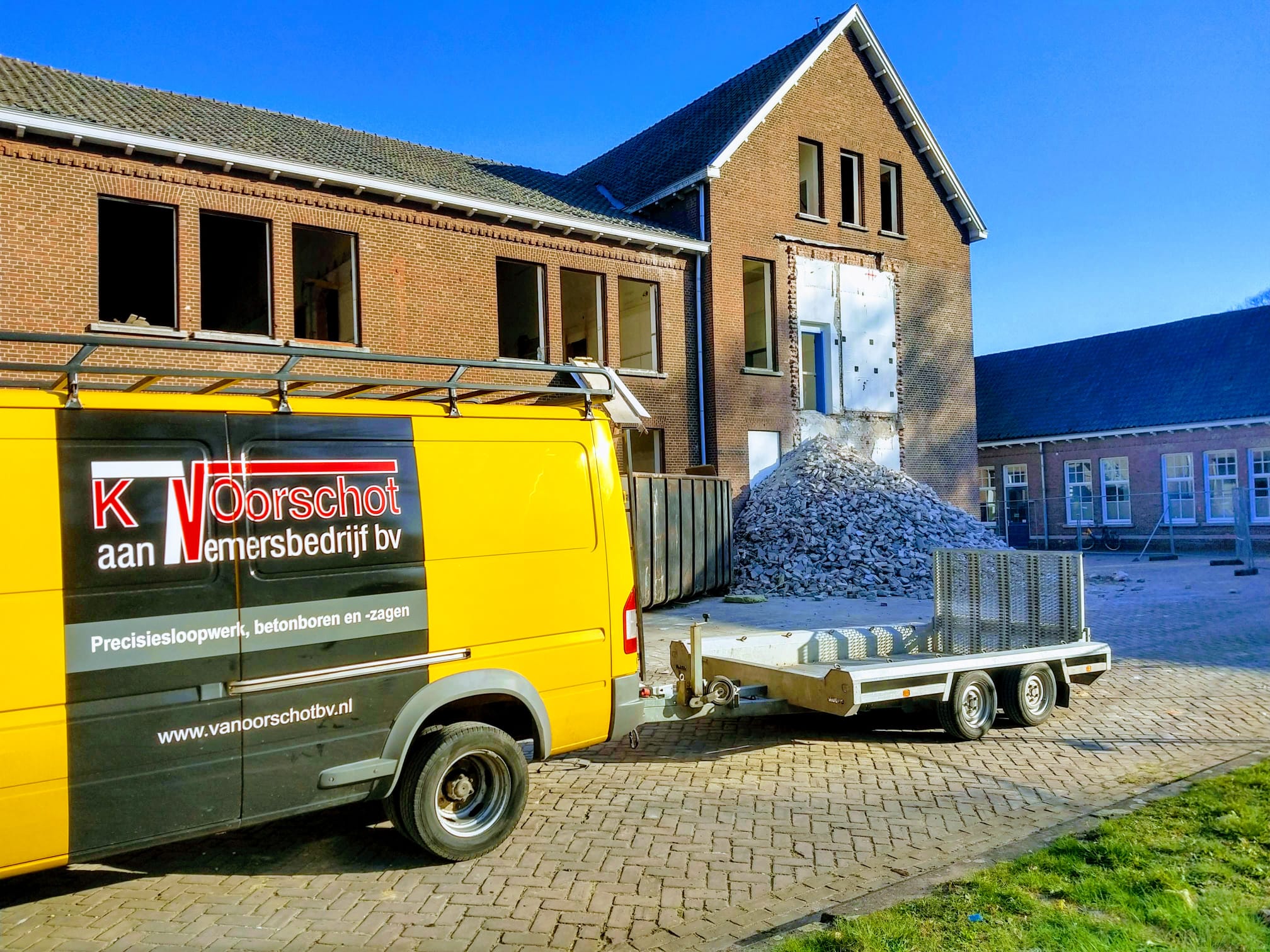 Onze werkzaamheden bestonden onder andere uit het maken van diverse muurdoorbraken, het slopen van betonnen trappen en het verwijderen van betonvloeren. Daarnaast zijn alle plafonds en kozijnen verwijderd, zijn er daksparingen aangebracht en hebben we meerdere aanbouwen compleet gesloopt. Ook zijn volledige gevels zorgvuldig verwijderd.
